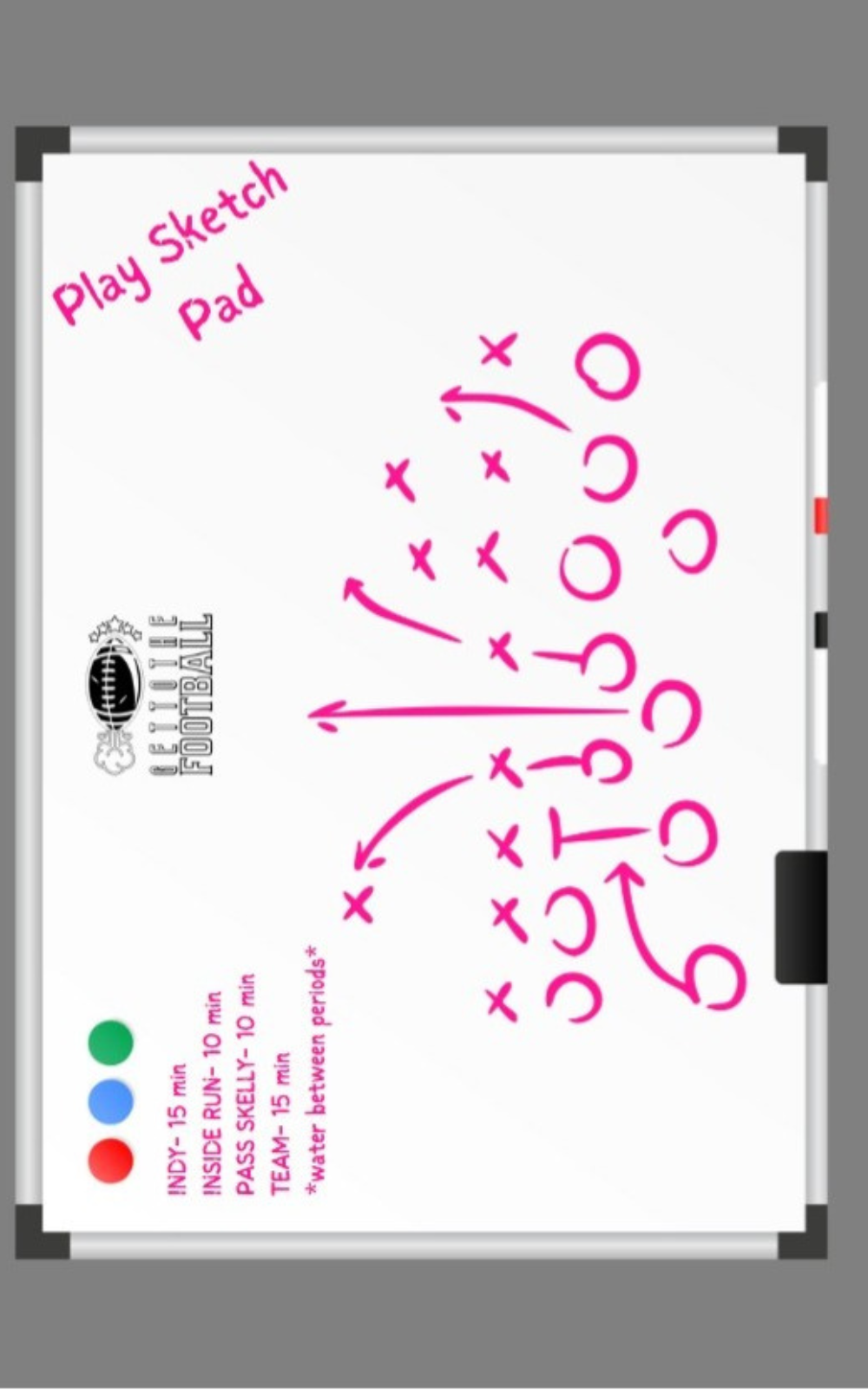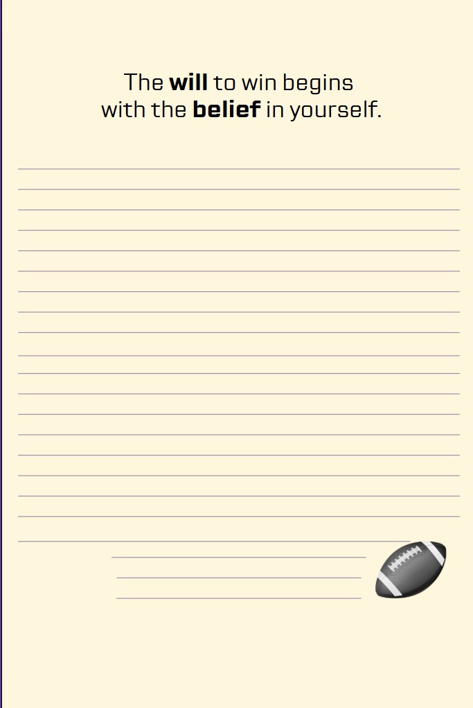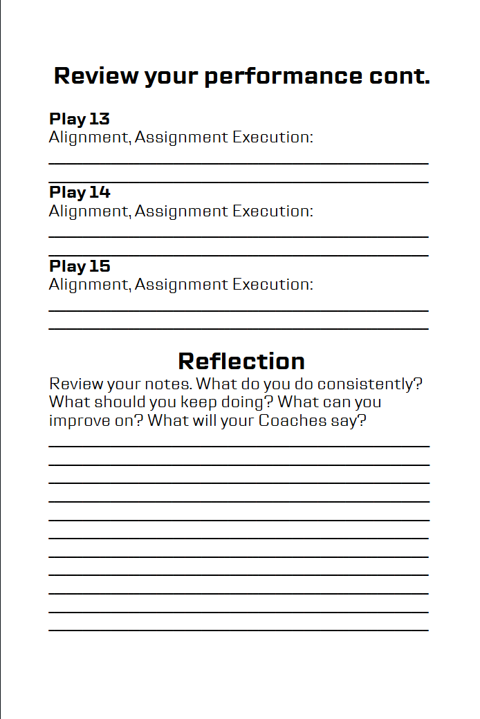 - 100 pages of white lined paper and blank play diagrams